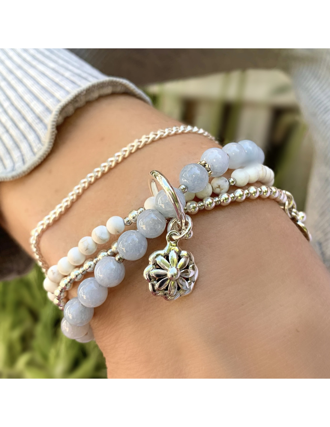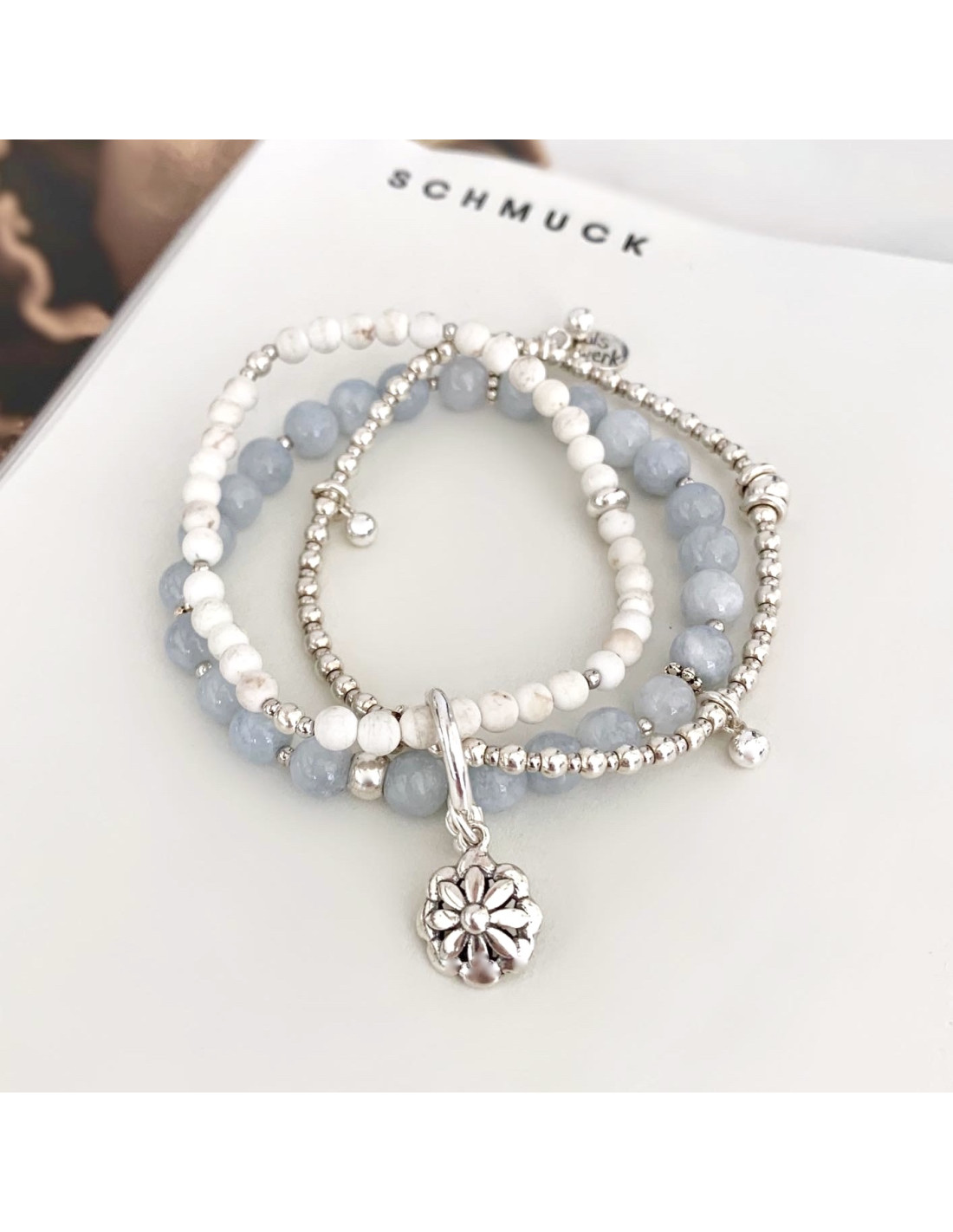 Dürfen wir vorstellen? Ein bezauberndes Armband aus Aquamarin, Dendritenjaspis, Silberelementen und Silberkügelchen, die Silberblume aus geschwärztem Silber am runden Verschluss, aus 925 Sterling Silber ...weitere Details in der folgenden Beschreibung...